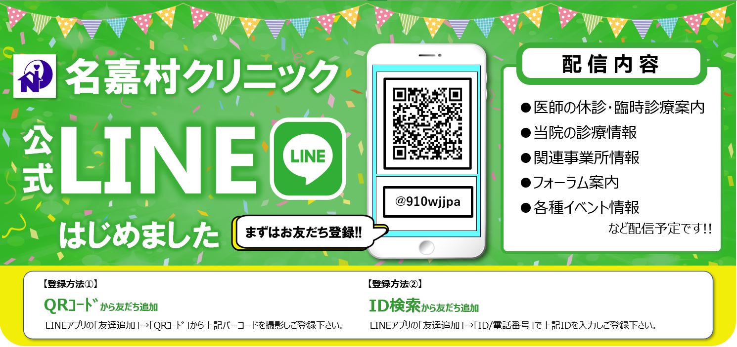 【名嘉村クリニック公式LINE開設のお知らせ】